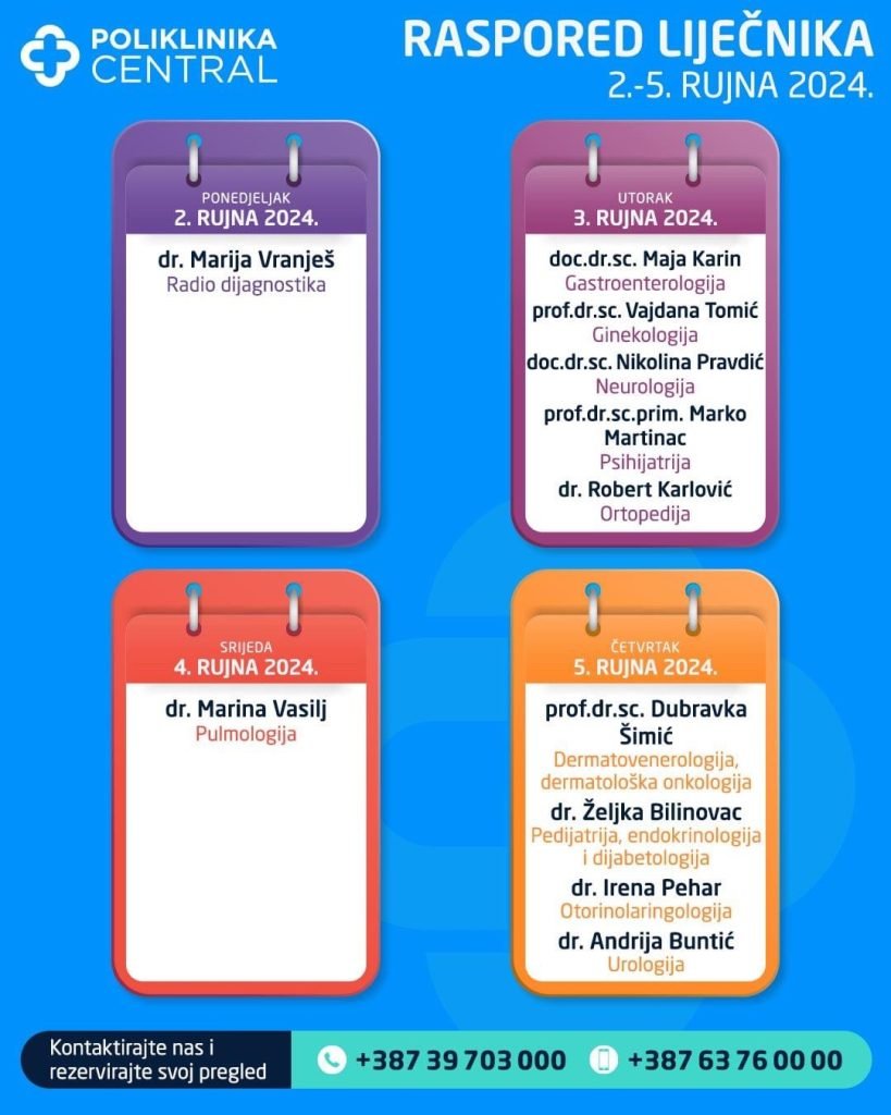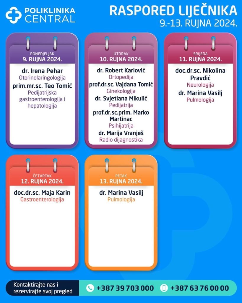 Poliklinika Central je objavila tjedni raspored liječnika – rezervirajte termin na vrijeme